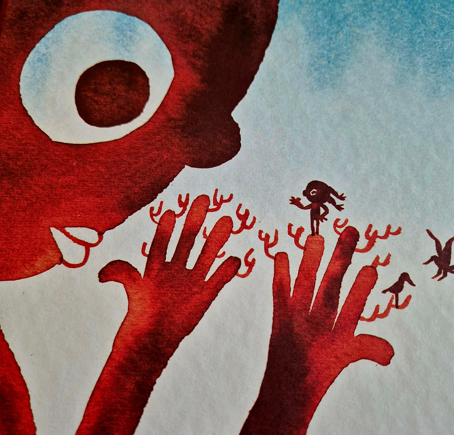 Quando gli adulti che circondano la protagonista capiscono che la sua altezza smisurata può essere molto utile iniziano a sfruttarla. Avanzano richieste sempre più rischiose, fino a quella più insensata ed egoista, abbassare il sole così che nessuno abbia più freddo. Ma chi si avvicina troppo al sole, ce lo insegna la mitologia, si brucia: le mani della non-più-bambina sono ridotte a due mucchietti di cenere, che non servono più a nessuno. Ferita e abbandonata da tutti, la creatura si rifugia in quella che scopre essere la sua dimensione più autentica, il bosco.