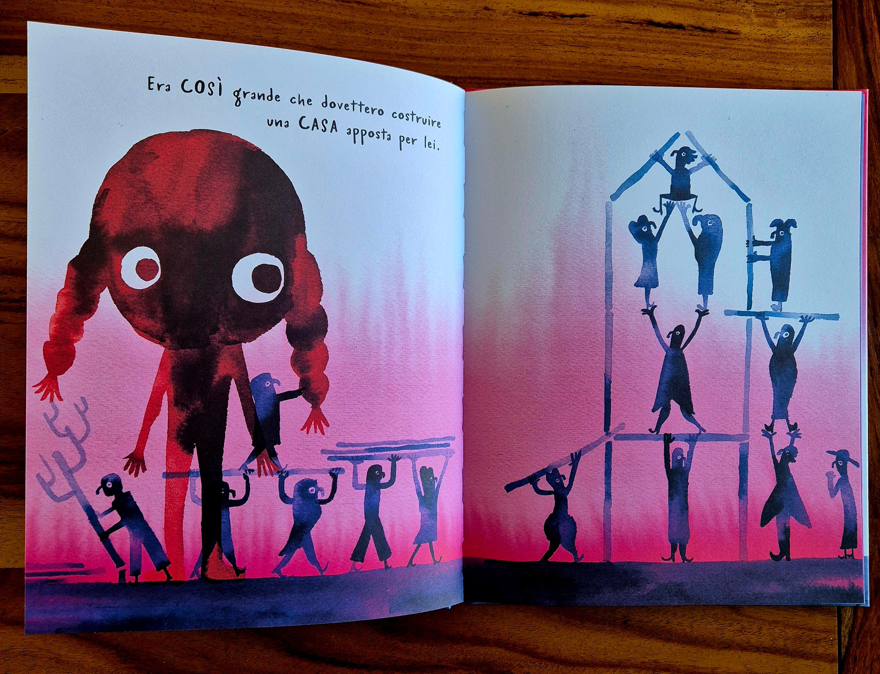 Le gigantesche dimensioni della protagonista rappresentano un bel problema, prima di tutto perché nessuna casa riesce più a ospitarla. Gli adulti intorno a lei si premurano immediatamente per costruirle un nuovo spazio in cui abitare, adatto alla sua enorme statura. Quello di cui ha bisogno, però, non è un recinto che la contenga, soprattutto se progettato da altri.