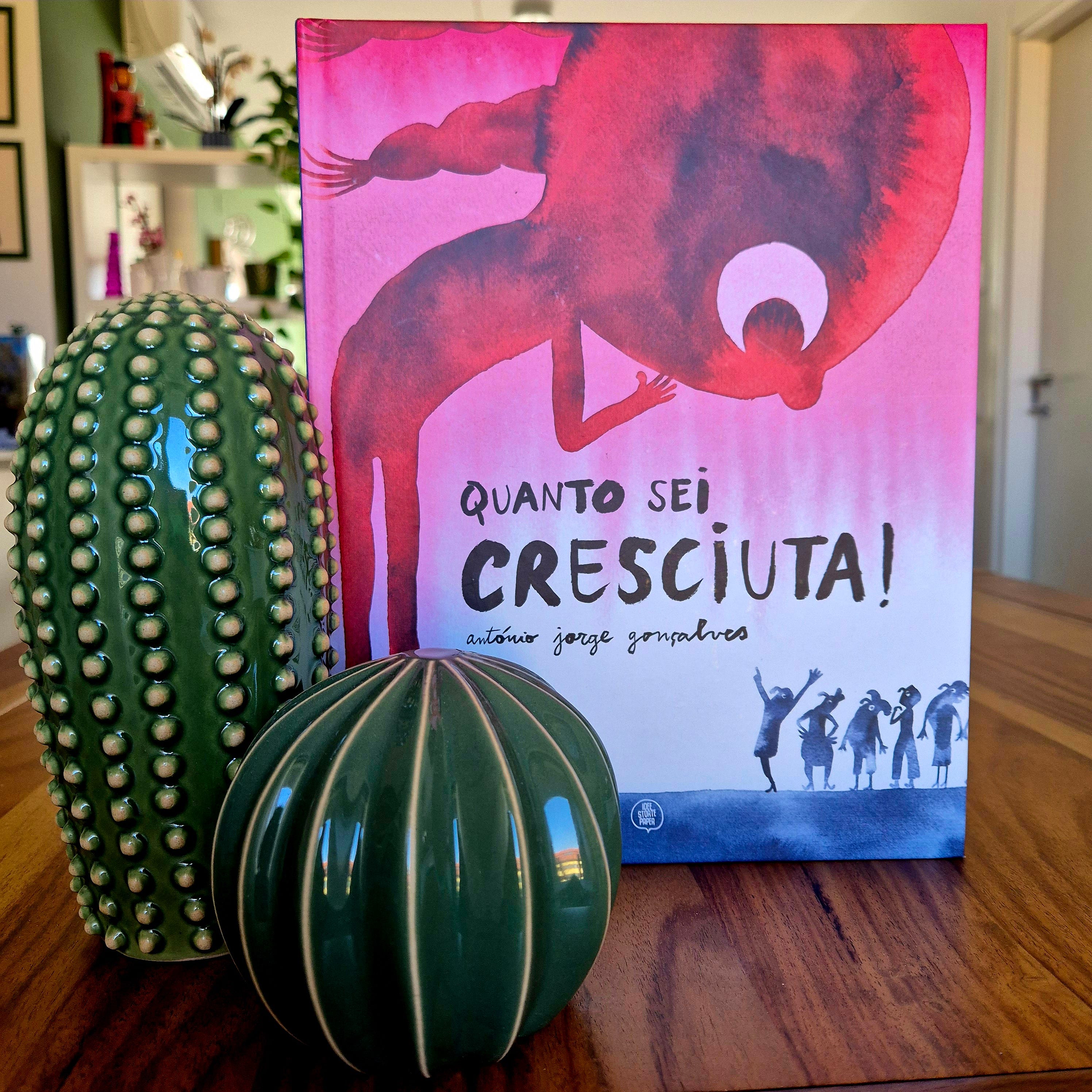 Nell’albo illustrato Quanto sei cresciuta! di Antonio Jeorge Gonçalves, poliedrico illustratore portoghese, la protagonista non solo cresce per davvero, ma lo fa in modo esagerato. Per entrare nelle ridotte dimensioni della copertina, deve chinarsi e abbassare lo sguardo sulla lunga fila di piccole creature che intanto la giudicano, fanno congetture, accorrono per verificare con i propri occhi quel fenomeno incredibile. Osservandoli meglio, gli omini neri in copertina e all’interno del libro ricordano i medici della peste cinquecenteschi, con le loro maschere appuntite a proteggerli dal contagio.